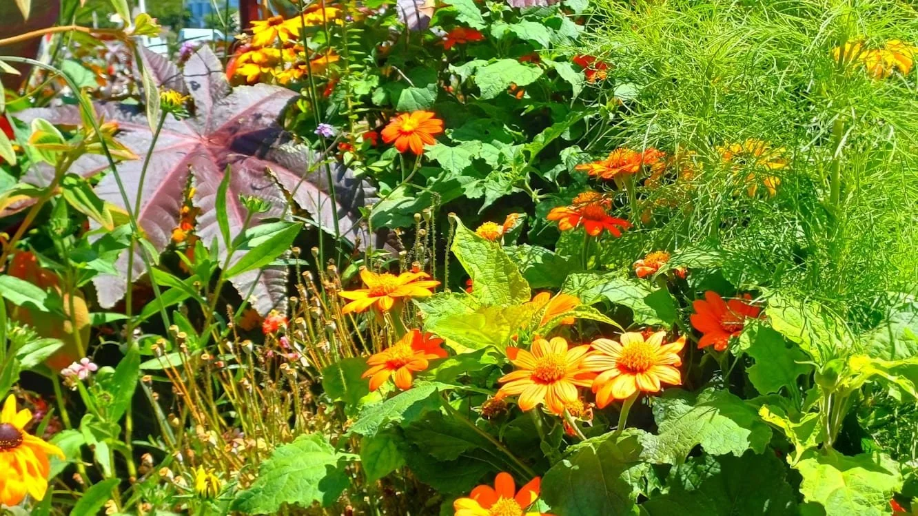 The plant is encroaching on its neighbors like an overfriendly cousin at a family reunion.